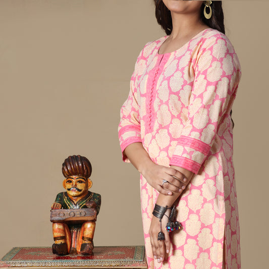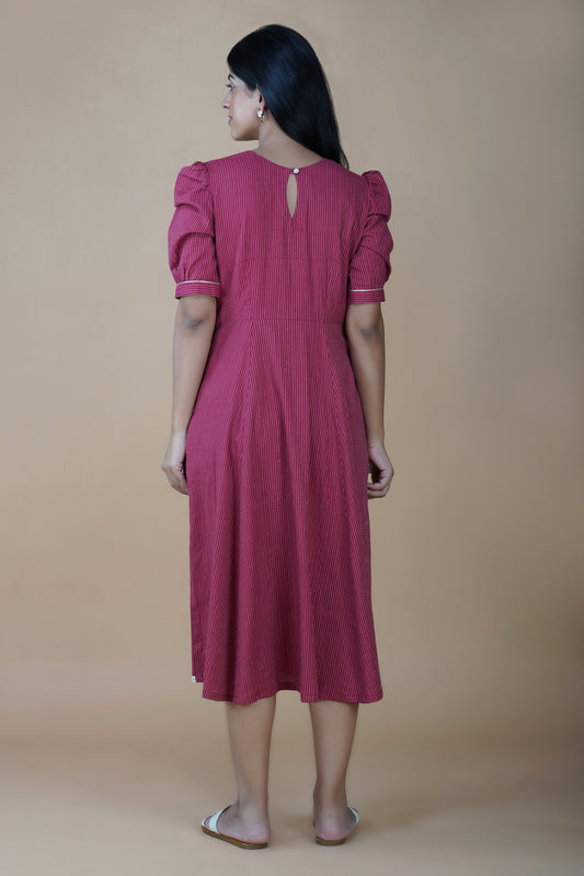 Boho Breeze Block Print Cotton Midi Dress - Mystic Magenta