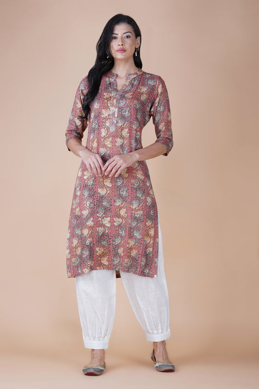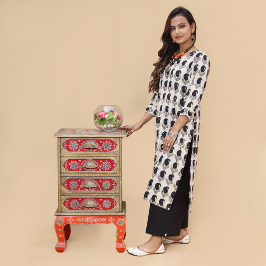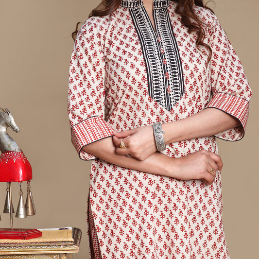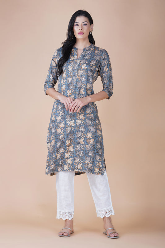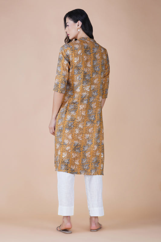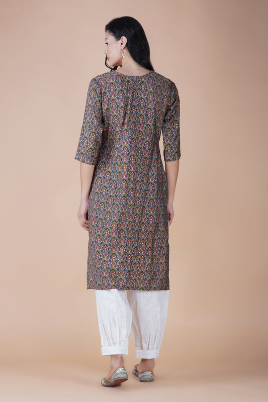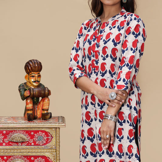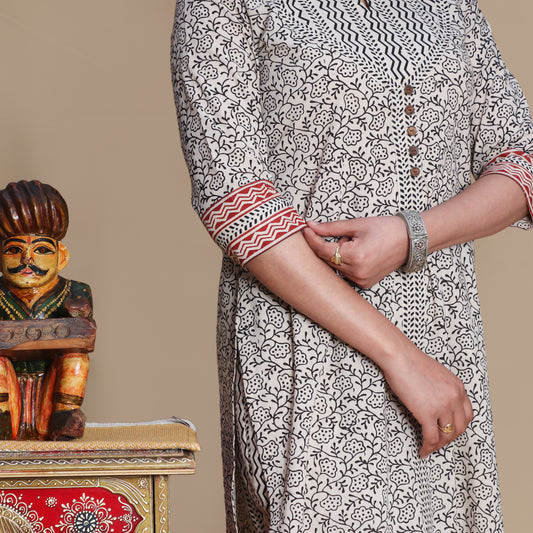 Indie-Chic Kalamkari Cotton Blazer with Mandarin Neckline - Ink and Ivory