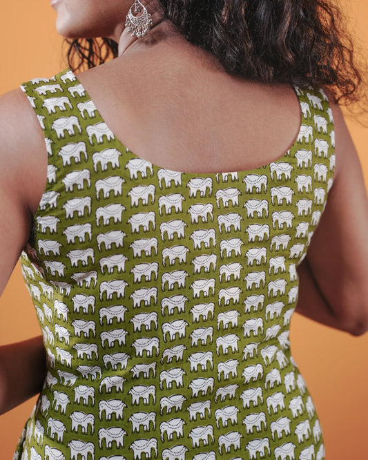 Green Safari Block Dress (Sleeveless) - Olivewood