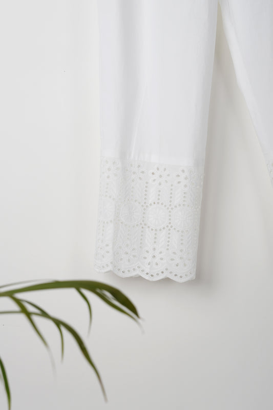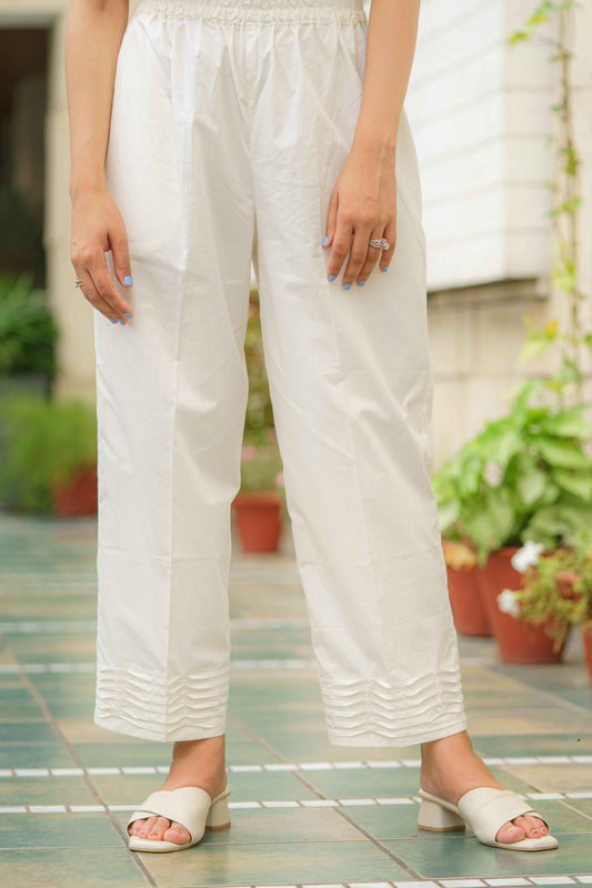 Pure Cotton White Palazzo with Broad Hakoba Lace