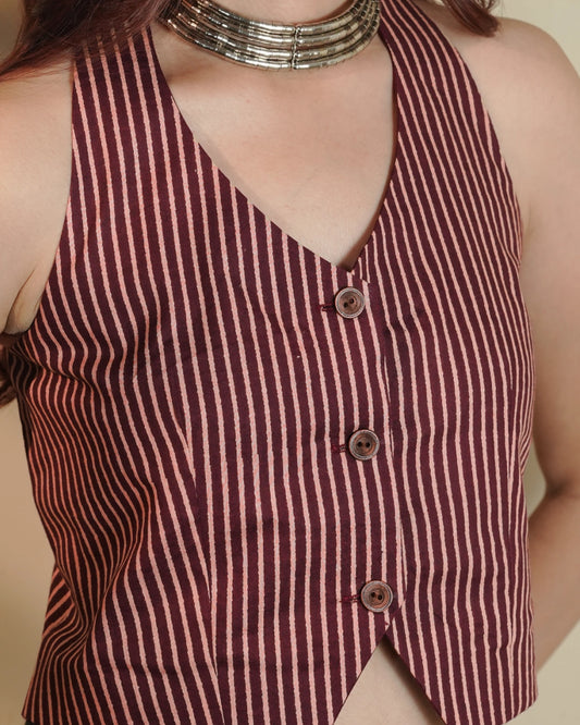 Pure Cotton Striped Indie Vest – Vintage Maroon