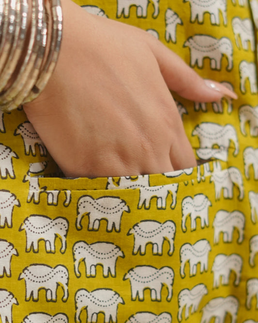 Pure cotton block print Indie Vest (Sleeveless) – Mustard Veil