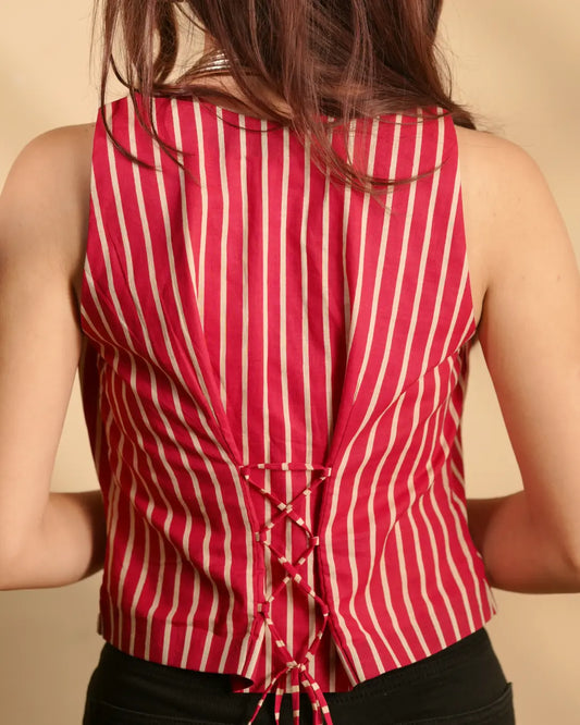 Pure Cotton Striped Indie Vest – Electric Rose