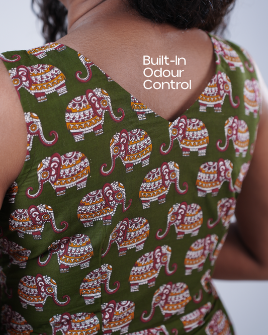 Jaipur Parade Hand Block Print Cotton Midi Dress (Sleeveless) - Sage Dust