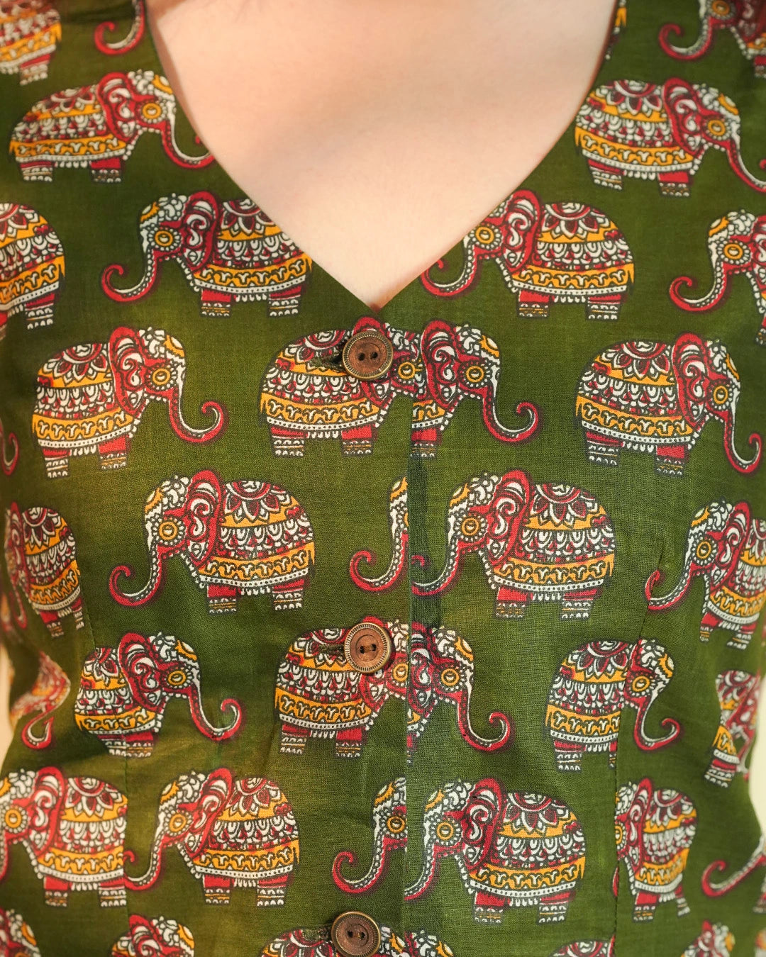 Pure Cotton Block print Indie Vest (Sleeveless) - Olive Haze