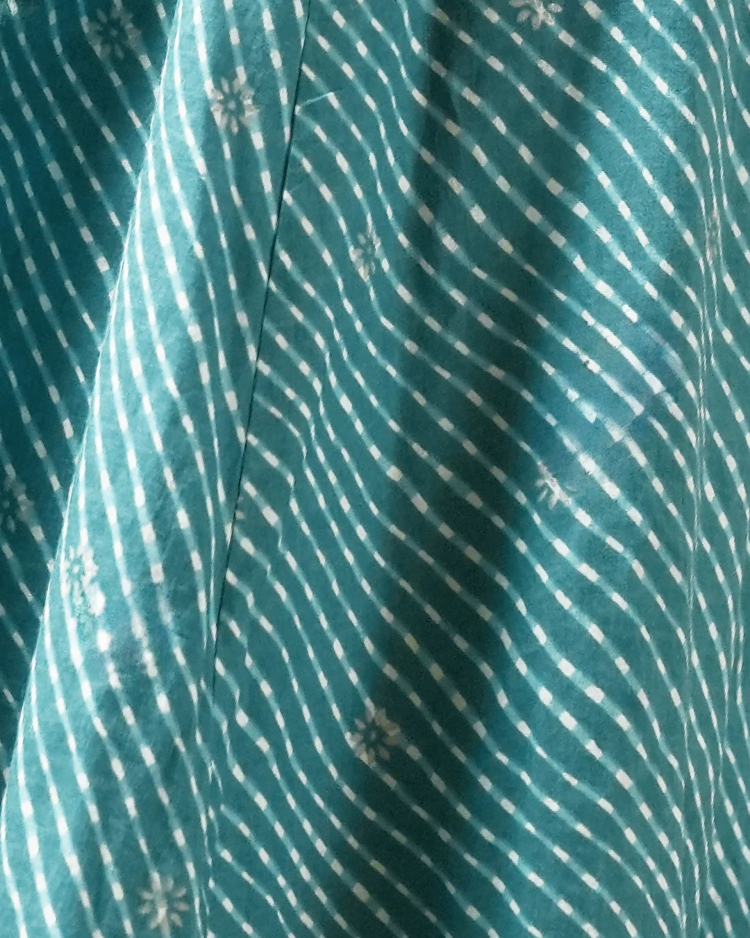 - Fabric dyed using natural, vegetable dyes may rub dry or bleed colour on coming in contact with water for the first time.